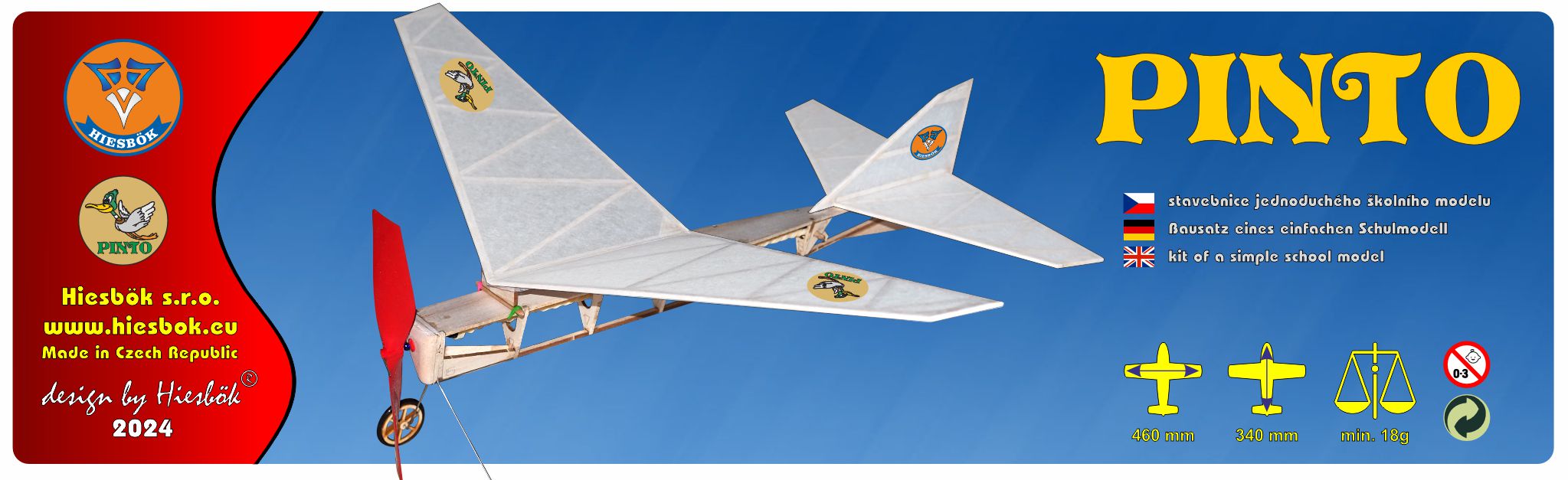 Pinto je klasická stavebnice modelu poháněného gumovým svazkem.