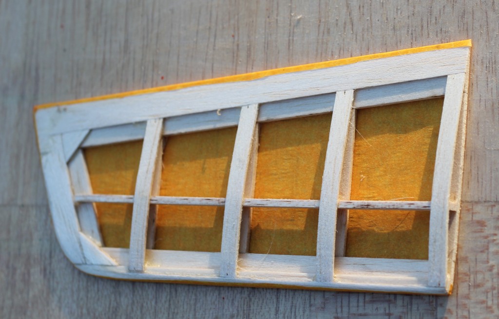 Křídlo je vytvořeno pouze z lišt či „pásků“ které si můžete nařezat téměř z čehokoliv. Model lepte nejlépe lepidlem UHU Hart.